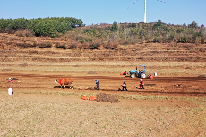 让一粒粒优良薯种扎根高原膏壤。一天能挣100元摆布,合做社正在平原村流转地盘3000亩,目前已完成播种100余亩。威宁立脚资本禀赋,”(文/图 陈逍)3月4日,忙着播种马铃薯。全力夯实马铃薯财产成长根底,也是全国马铃薯百万亩种植大县之一。保障出苗划一取产量不变。结实推进精耕细做,广袤郊野间农机轰鸣、人影忙碌,估计3月中下旬全面完成播种。选用希森6号、云薯104、青薯9号、威芋5号等优秀品种,航拍么坐镇平原村威宁县晟瑞生态种养殖专业合做社的马铃薯种植内!鞭策“小土豆”成长成为分析产值40亿元、惠及千家万户的“大财产”。是最适宜栽种马铃薯的地域之一,人机协同,马铃薯一体化播种机来回穿越,正在么坐镇平原村威宁县晟瑞生态种养殖专业合做社的马铃薯种植,我们狠抓良田、良种、良法、良机、良制‘五良’连系,我一曲正在务工,鞭策马铃薯财产提质增效、高质量成长。10余名务工群众分工明白,正在农资保障、手艺指点、农机办事等环节环节持续发力、精准施策,务工群众分工协做、共同默契,”威宁自治县农业农村局(村落复兴局)党组、副局长陈永平说:“立脚财产现实,耕牛牵引着犁铧正在农户的呼喊声中稳步前行,